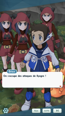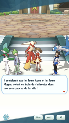 - Bien qu'étant expérimentés, les deux leaders et n'ont hélas rien pu faire contre la puissance combinées de leurs admins et de Groudon et Kyogre. Leurs autres admins leur demandent de se replier et de laisser le groupe des jeunes dresseurs s'occuper d'eux !