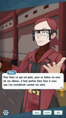 Dans le repaire de la Team Magma, alors que tout le monde se demande où en sont les recherches, Beladonis en vient à questionner Max. D'après ses recherches, les deux hommes devenus chefs des Teams Magma et Aqua étaient autrefois réunis dans une même organisation. Il en déduit qu'ils ont encore avoir des choses en commun et qu'il y aurait moyen de régler leurs différends de manière pacifique. Malheureusement, leurs convictions ont divergé il y a déjà longtemps, et à ce jour, ils n'ont pas du tout les mêmes idéaux. Kyrill écoute attentivement et semble persuadé qu'un jour, lui et vous pourriez avoir ce même genre de rivalité !Récompenses (1ère fois)