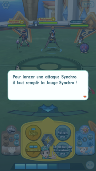 Les Attaques Synchro sont des attaques très puissantes, mais réservées aux combats en mode coopération. Elles combinent les types des trois Duos présents, ce qui permet d'exploiter au maximum les faiblesses adverses.