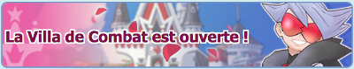Le 28 février 2020, une nouvelle fonctionnalité appelée Villa de Combat a été rendue disponible ! Pour y participer, vous devez avoir terminé le Chapitre 7 du scénario principal et à ce moment-là Thalie vous informe de sa disponibilité de même qu'Alexis qui vous y accueille. Sachez que participer pour la toute première fois vous permet aussi d'obtenir 1000