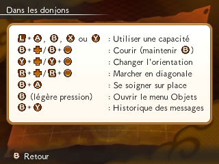 La carte sur l'écran du bas permet de suivre votre progression à travers un donjon. Elle indique aussi la position de vos ennemis, celles des objets au sol, des escaliers (quand vous en êtes proche) et des Cases Miracle permettant de rétablir vos stats initiales quand vous avez subi un changement de statut.