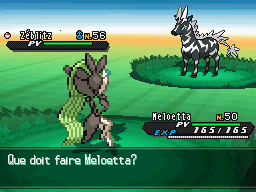Même différence lors d'un combat, la barre des PV et de l'XP est noire sur Noir 2 et blanche sur Blanc 2.
