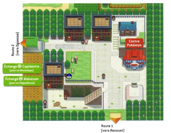 Dans le bâtiment le plus au Sud d'Arabelle, une dresseuse vous échange un Capidextre contre un Minotaupe. Après ce premier échange, elle voudra d'abord combattre avec votre Minotaupe puis cherchera un Hippodocus contre son Alakazam.Dresseurs