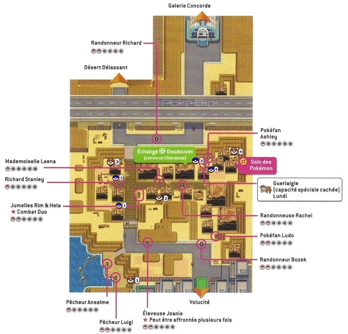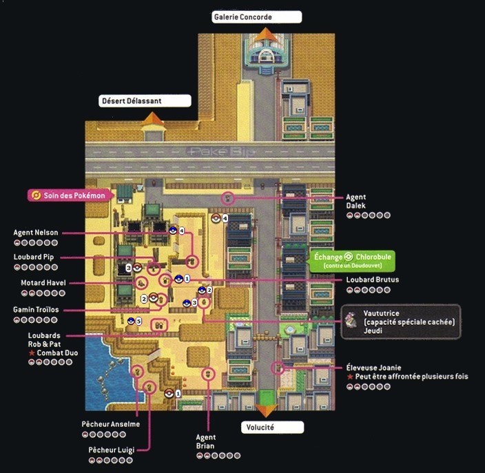 Ces Pokémon apparaissent dans les recoins de la zone, dans Noir 2, il s'agit de Vaututrice qui apparaît les jeudis alors que dans Blanc 2, c'est Gueriaigle qui apparaît les lundis.Échange interne