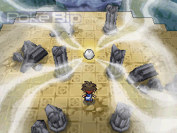 Condition : Avoir battu la Ligue Pokémon.Regirock peut être capturé aux Ruines Enfouies situées en dessous de la Route Bardane, ces ruines se présentent comme des puzzles que vous devez résoudre. Le premier est le foyer de Regirock, il requiert de vous que vous vous déplaciez de 6 pas vers le bas à partir du centre de la pièce puis de 9 pas vers la droite.