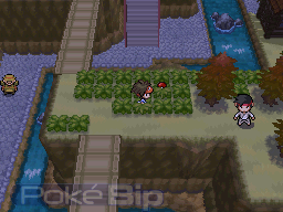 Remontez d'abord le cours d'eau, battez les Dresseurs et ramassez les objets au passage.