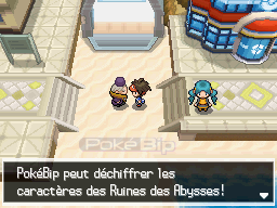Au premier étage du bâtiment immédiatement à l'est après la porte de'entrée, une petite fille vous propose de jouer à Fau-Plante-Eau.A côté de cette fillette, un personnage vous fait passer un quizz : vous gagnez un Joyau du type de votre starter.