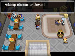 Ce combat terminé, le Rival débarque et vous pouvez entrer dans la maison du Sage qui abrite quelques membres de la Team Plasma, parmi lesquels les nymphes de N. Le Sage Carmine vous donne alors le Zorua que N lui a laissé avant de partir.