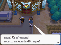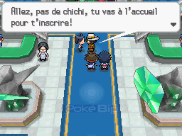 En sortant, vous tombez nez-à-nez avec le Rival, qui accompagne ensuite Bardane. Rejoignez-les au sud de la ville, au Pokémon World Tournament.