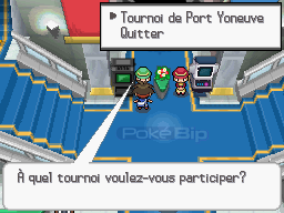 Retrouvez Tcheren qui part s'inscrire avec votre Rival. Parlez à la dame au chapeau vert à gauche de l'entrée : vous pouvez alors participer au Tournoi de Port Yoneuve contre votre Rival, Tcheren et Nicolaï.