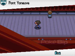 En traversant le Pont, vous apercevez parfois une ombre au sol : marchez dessus, car il s'agit soit d'un Pokémon, soit d'une Aile (objets augmentant les stats de base des Pokémon).