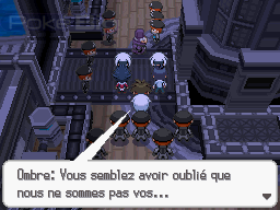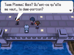 Tandis que le membre de la Néo Team plasma s'enfuit, votre rival à ses trousses, l'autre vous confie un message, avant de s'en aller à son tour.
