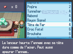 - Grosseracine (donnée par le Vétéran à l'étage 25 de l'immeuble à côté du centre Pokémon)