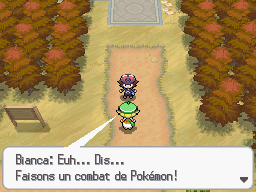 Dans Pokémon Noir et Blanc, vous êtes accompagnés tout au long du jeu par deux personnages Bianca et Tcheren, qui sont à la fois vos amis d'enfance et vos rivaux. Vous trouverez sur cette page les détails des combats contre Bianca, qui prendra toujours le starter désavantagé contre le vôtre.