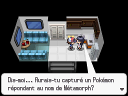 Une Scientifique dans la caravane à l'ouest de la Route 15 vous donnera Motisma, le Pokémon aux multiples formes, contre un Métamorph.