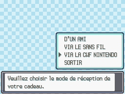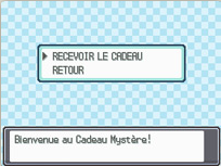 - en dessous de "Continuer" et de "Connexion au Pokéwalker", vous trouvez "Cadeau Mystère".