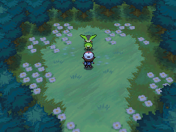 Condition : Avoir combattu Cobaltium.Rendez-vous dans la Forêt d'Empoigne et découvrez le légendaire dissimulé dans une nouvelle zone, à l'est. Avancez un peu et vous tomberez sur la Clairière Réflexion où se cache Viridium.