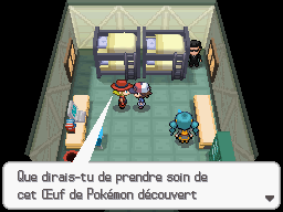 Pour voir ce Pokémon, rendez-vous sur la Route 18. Rentrez dans la maison et parlez au personnage vêtu de rouge avec un chapeau. Il vous donne ce Pokémon sous la forme d'oeuf !