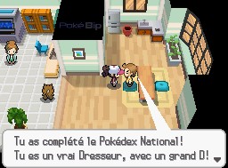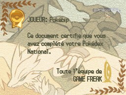 Si vous avez enfin réussi à compléter le Pokédex National (les 634 Pokémon nécessaires au moins), le réalisateur du jeu vous offre un nouveau certificat qui sera ensuite exposé à côté du premier dans votre chambre de Renouet.