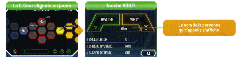 - soit par le C-Gear (connexion sans fil) pour communiquer avec des joueurs dans un rayon d'une dizaine de mètres autour de vous,