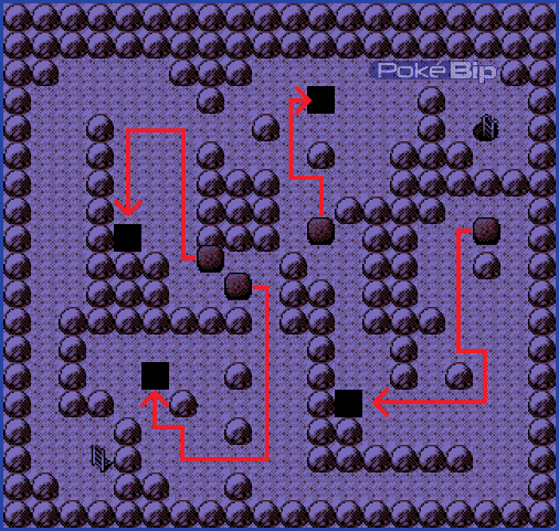Cet endroit est assez compliqué. Il n'y a pas moins de quatre entrées (nord-ouest, nord-est, sud-est et sud-ouest), mais seule l'entrée nord-est permet d'atteindre Lugia.