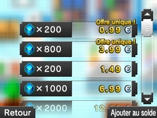 De plus, si vous achetez 5000 Picrites (plus ou moins 35 € selon la quantité de Picrites achetées à chaque fois), vous pouvez ensuite en obtenir d'autres gratuitement à la boutique. L'idée étant de proposer au joueur le choix entre patienter pour jouer gratuitement ou payer un jeu le même prix qu'une cartouche et pouvoir y jouer sans contraintes de temps.