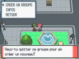 Dans Diamant, Perle, Platine et HGSS, vous avez la possibilité de créer ou de rejoindre un groupe avec vos amis. Cela a pour effet de partager les mêmes Pokémon apparaissant au Grand Marais, d'avoir les mêmes numéros gagnant à la loterie ID, d'avoir les mêmes dresseurs à la Tour de Combat, etc. Ceci accroît la coopération et la compétition si vous disposez d'un ami à proximité.Note : Seuls certains événements peuvent être partagés par un joueur de DPP et un joueur de HGSS, comme le numéro gagnant de la Loterie ID ou les statistiques de capture.