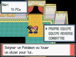 Dans le menu "Propre équipe", vous pouvez soigner vos Pokémon, louer des objets mais aussi vérifier leurs résumé et stats alors que dans le menu "Équipe adverse", vous pouvez voir les informations de l'adversaire ou modifier les niveaux de ses Pokémon. Le tout nécessite évidemment de dépenser des PCa.