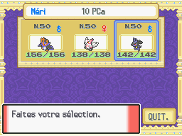 | Guichet | Mode | Nombre de Pokémon |