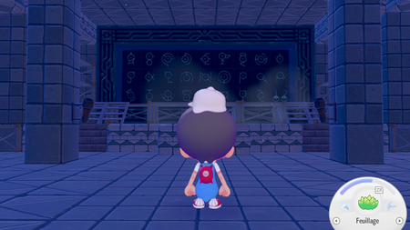 En interagissant avec ce portail, un Pokémon se matérialise devant vous. Si vous ne l'avez pas reconnu sur la fresque, il s'agit de Mew, le Pokémon fabuleux ! Il se lie d'amitié avec vous et peut rejoindre vos autres amis Pokémon !