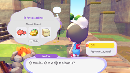 Pour aller à une Île Rêve, vous devez d'abord trouver Baudrive, qui possède la spécialité Île Rêve. Celui-ci se trouve à l'ouest de Terrassec, une fois Éclate-Roc appris, mais vous avez également besoin de compléter la requête "Une peluche à trouver" pour pouvoir utiliser sa spécialité.