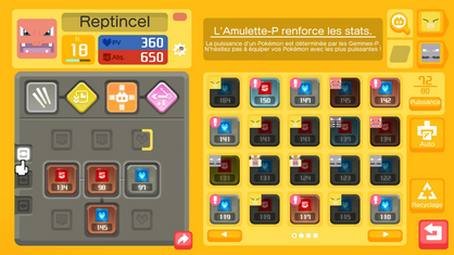 Il existe aussi dans ce jeu certains types de bonus nommés Bingo Bonus. En attribuant à un Pokémon des Gemmes-P, vous pouvez lorsque le niveau de votre Pokémon le permet en aligner 3 (horizontalement ou verticalement).