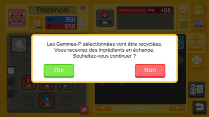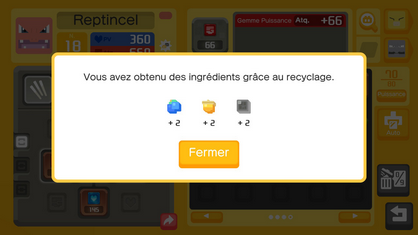 Une autre fonctionnalité présente dans le jeu vous permet de récupérer des ingrédients !Recycler des Gemmes-P