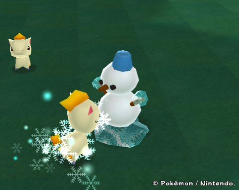 Description : Petit bonhomme de neige. Si un Pokémon l'attaque, il riposte avec de la glace gelant le Pokémon temporairement !