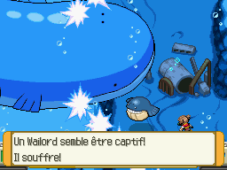 Tout ce boucan était en fait un Wailord capturé par des Pièges ! Comme vous êtes Top Ranger, vous vous donnez la mission de sauver ce Pokémon. Ces Pièges se détruisent grâce à Broyage 3, ce qu'ont les Serpang de la Mer de Wailord.