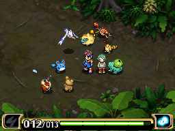 Vous trouvez les deux sbires tentant de capturer Pichu Kulélé ; vous intervenez alors contre Mustébouée et Cradopaud.| Combat | |||||