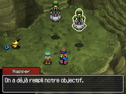 Après le combat, les Nappers tentent de fuir mais sont surpris par Raikou, ils arrivent tout de même à partir. Vous parlez un moment avec Cheron, mécontent que la stèle soit détruite. Mais cela est terminé, et les Nappers sont partis !