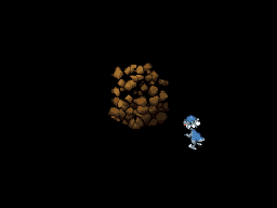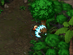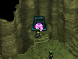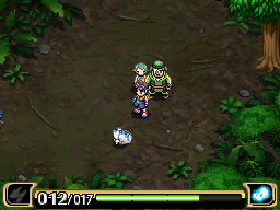 Une fois dehors, suivez le chemin, détruisez la Pierre avec Kranidos, puis partez en bas pour rejoindre le village, par le même chemin que tout-à-l'heure.