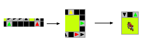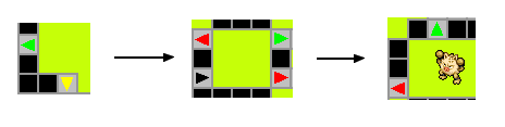 Ceci fait, la porte s'ouvrira et vous pourrez goûter à l'épreuve d'Habileté : un dédale de dalles fléchées. Évidemment, marcher sur une dalle vous fera aller dans la direction indiquée.