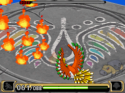 Un combat éprouvant, car les attaques de Ho-oh couvrent une bonne partie de l'écran, vous empêchant d'encercler l'oiseau de façon correcte. Néanmoins, vous pouvez user des Poké-Aides pendant les attaques, si vous avez compris le fonctionnement de ces dernières.