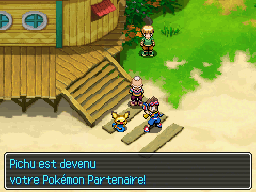 Une fois ceci fait, parlez à Naïa pour partir. La fille du Ranger garde vos Pokémon amis et Pichu, qui ne peuvent aller sous l'eau.
