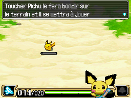 À ce moment, Pichu décide de vous rejoindre. Booker vous demande si vous désirez qu'il devienne votre Pokémon Partenaire. Vous êtes obligé d'accepter. S'en suit un tutoriel d'utilisation de votre partenaire. Capricieux, celui-ci apparaîtra quand il le désirera, au bord de la jauge d'énergie, et, si vous le sélectionnez via le stylet, il se jètera sur le champ de bataille pour jouer sa musique. Chaque note qui touche le Pokémon sauvage fera grimper sa jauge d'amitié, mais, comme pour les Poké-Aides la capture doit être scellée par une boucle du Capstick.