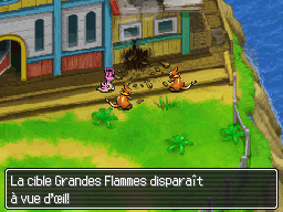 Continuez vers le Nord. Vous aperceverez la maison de Targos... qui brûle ! Ne gâchez pas vos Pokémon les plus puissants, capturez plutôt le Kaiminus présent dans la zone pour éteindre la flamme. En effet, une fois éteinte, celle-ci reprend de plus belle ! Vous voilà obligé de faire appel aux trois Pokémon qu'il était conseillé de garder : les deux Mustebouee et le Sancoki. Si vous ne les avez pas, il suffit de retourner sur la carte précédente, dans la baie, pour les capturer.
