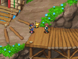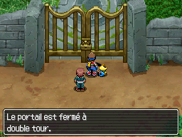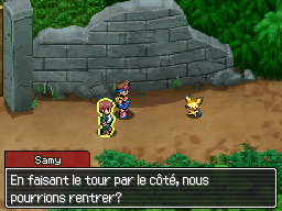 Allez donc vers le Nord, où se trouve le manoir. Vous pourrez voir que la grille est fermée. Vous devez donc trouver un passage par le côté. Suivez Pichu.