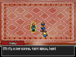 Cette salle est vide, exceptés un Evoli et un Magnéti, ce dernier pouvant recharger le Capstick.| Pokémon Sauvages dans la zone | |||||