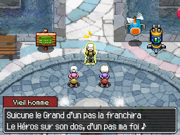 En arrivant sur la place, vous assisterez en effet à une nouvelle fuite des Nappers, talonnés par le Pokémon légendaire. Appelez Raikou pour les poursuivre. D'abord vers la gauche, puis vers le haut. Éthelle vous demandera alors de confirmer que vous êtes bien prêt, avant d'aller à la rencontre de Suicune.