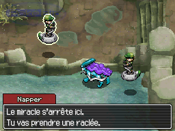 Après ce combat, le Napper fuira, sans toutefois vous laisser la clé. Il vous faudra donc trouver des Pokémon pouvant briser la cage.