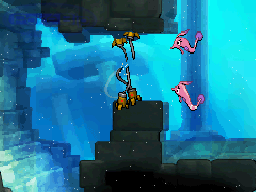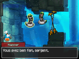 En arrivant dans une petite salle, vous apercevrez un petit bassin. Votre copilote vous indiquera que les Nappers sont au fond du-dit. Plongez pour les poursuivre.