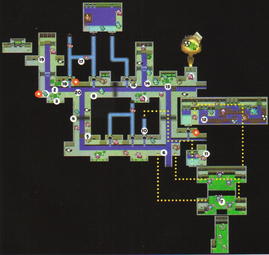 | R-076 | Carapuce | 3 | Dans la zone des plaques de fer nécessitant Traverse, il surgit de l'eau dans le cul-de-sac au centre | ||||