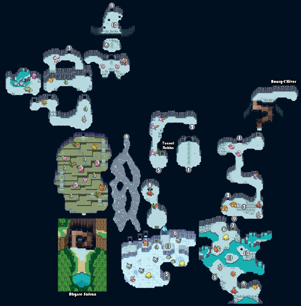 La Grotte Glaçon relie Automnelle et Printiville à Bourg-l'Hiver, une portion du Tunnel Rokka permet d'y accéder. Le seul autre moyen d'accès est de passer par les abysses de la Mer Safran.